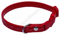 Obojek koženka stříbrné vlnky - červený 1,2×20-35cm AKCE